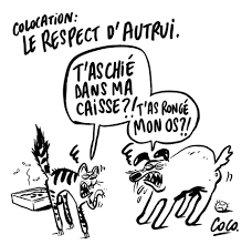 Une colocataire a fait rentrer de nombreux (ses) ami(e)s dans sa chambre pour y dormir. A cause d’elle, je suis contrainte de préciser le paragraphe précédent. Les ami(e)s seront les bienvenu(e)s en journée afin de pouvoir travailler en synergie sur des dossiers étudiantes. Dès qu’ils (elles) ont terminé, ils (elles) sont prié(e)s de rejoindre leur domicile. Exceptionnellement, une amie éloignée peut venir dormir. Les garçons qui ne sont pas des petits amis ou des fiancés n’ont pas le droit de dormir dans les chambres des filles. Dans cette colocation, le but est toutefois de travailler afin de réussir ses études. Toute colocataire ou amie de colocataire qui aurait d’autres intentions que celle d’étudier en toute tranquillité et qui ne respecterait pas les études, la tranquillité et le sommeil des colocataires étudiantes qui sont venues louer ces chambres dans ce but (par des rires, gloussements, conversations bruyantes, musique, etc.) n’a pas sa place dans ce logement. Je confirme que je refuse que mon logement devienne une auberge espagnole avec des allers et venues de personnes étrangères à la colocation. Cette situation m’a été signalée par les autres colocataires en place, gênées par la présence d’inconnus dans l’appartement de jour comme de nuit, elles n’avaient pas été prévenues et n’osaient plus rentrer dans la cuisine monopolisée par la colocataire et ses amis masculins pour y prendre leur petit déjeuner ou leur repas du midi. Cette situation ne devra plus se reproduire.